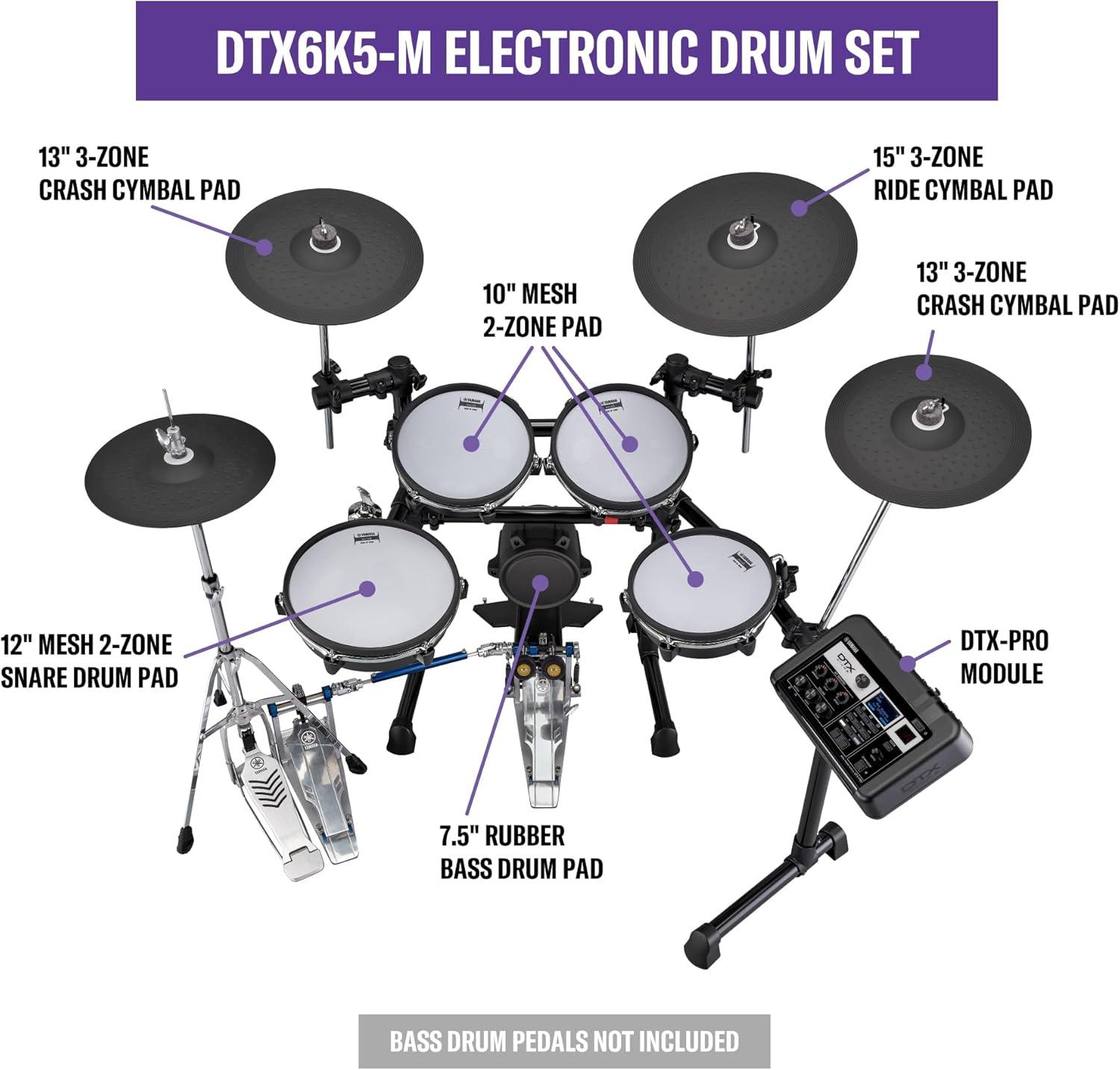 Yamaha Electronic Drum Set with Powerful PRO Module, 70 Premium Customizable, Kit Modifier Controls, USB Audio/MIDI, Silent Silicone Heads, DTX Touch Sound Editor Smart App (DTX6K-X)(Standard)