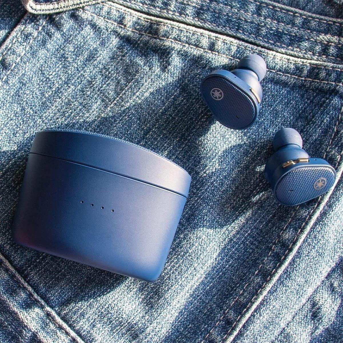 Yamaha TW-E5B True Wireless Earbuds, Bluetooth Headphones, Premium Sound, CVC Clear Voice Capture, Ambient Sound, IPX5 Water Resistant for Sport (Black)(Blue)